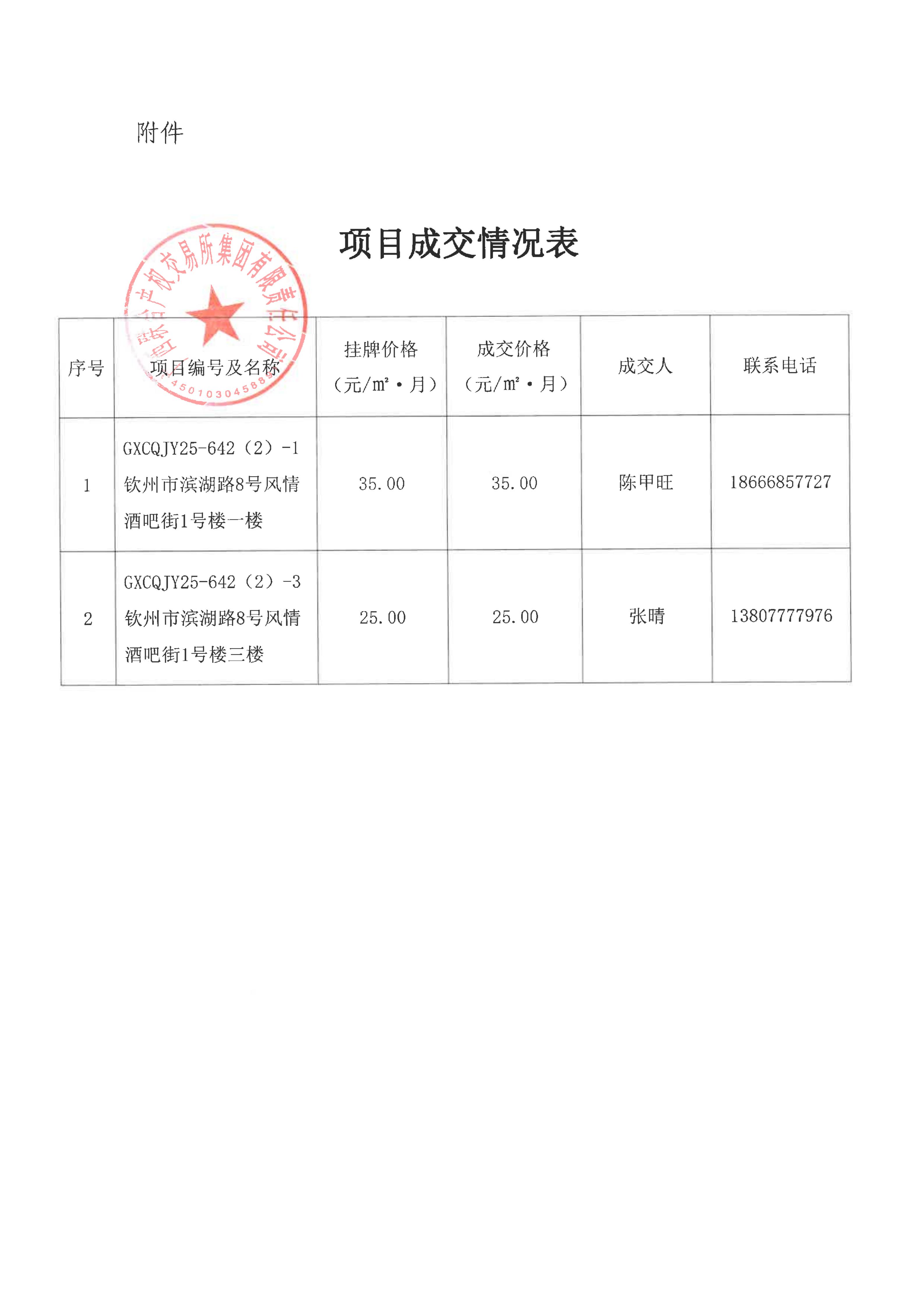 關于欽州市濱湖路8號風情酒吧街(蘭亭街)房屋公開招租項目成交情況的函(3#-01、9#-3)