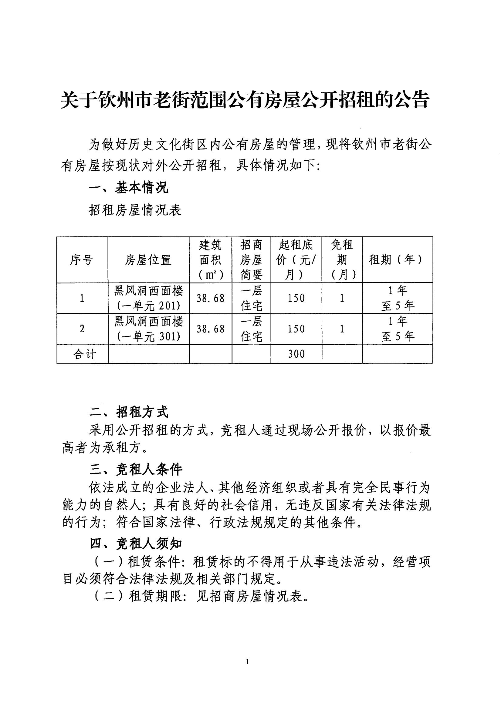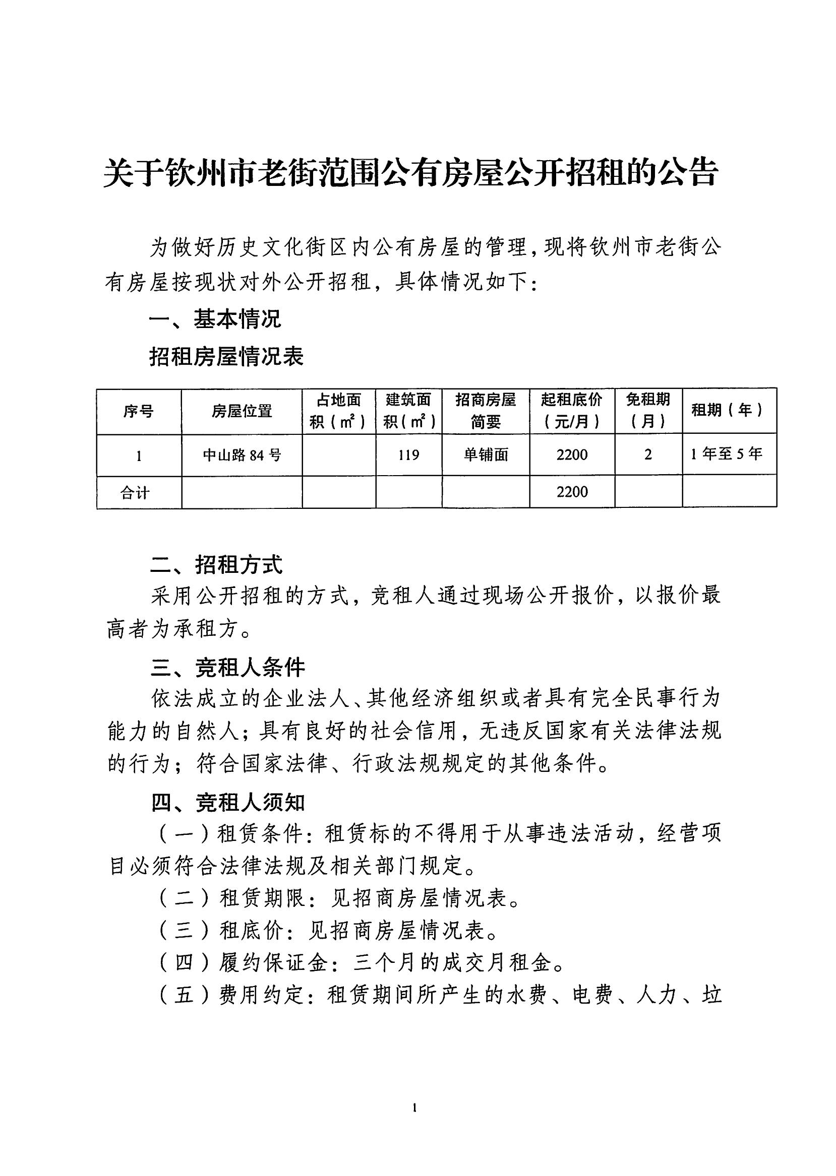 關(guān)于欽州市老街范圍公有房屋公開招租的公告