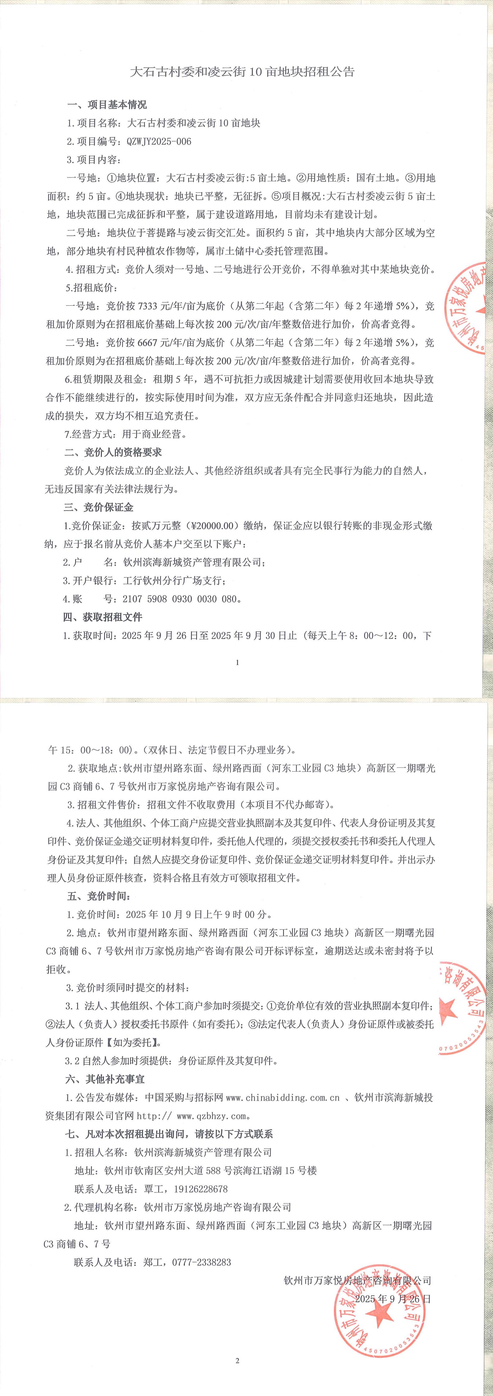 欽州濱海新城資產(chǎn)管理有限公司旺鋪及地塊對外招租公告