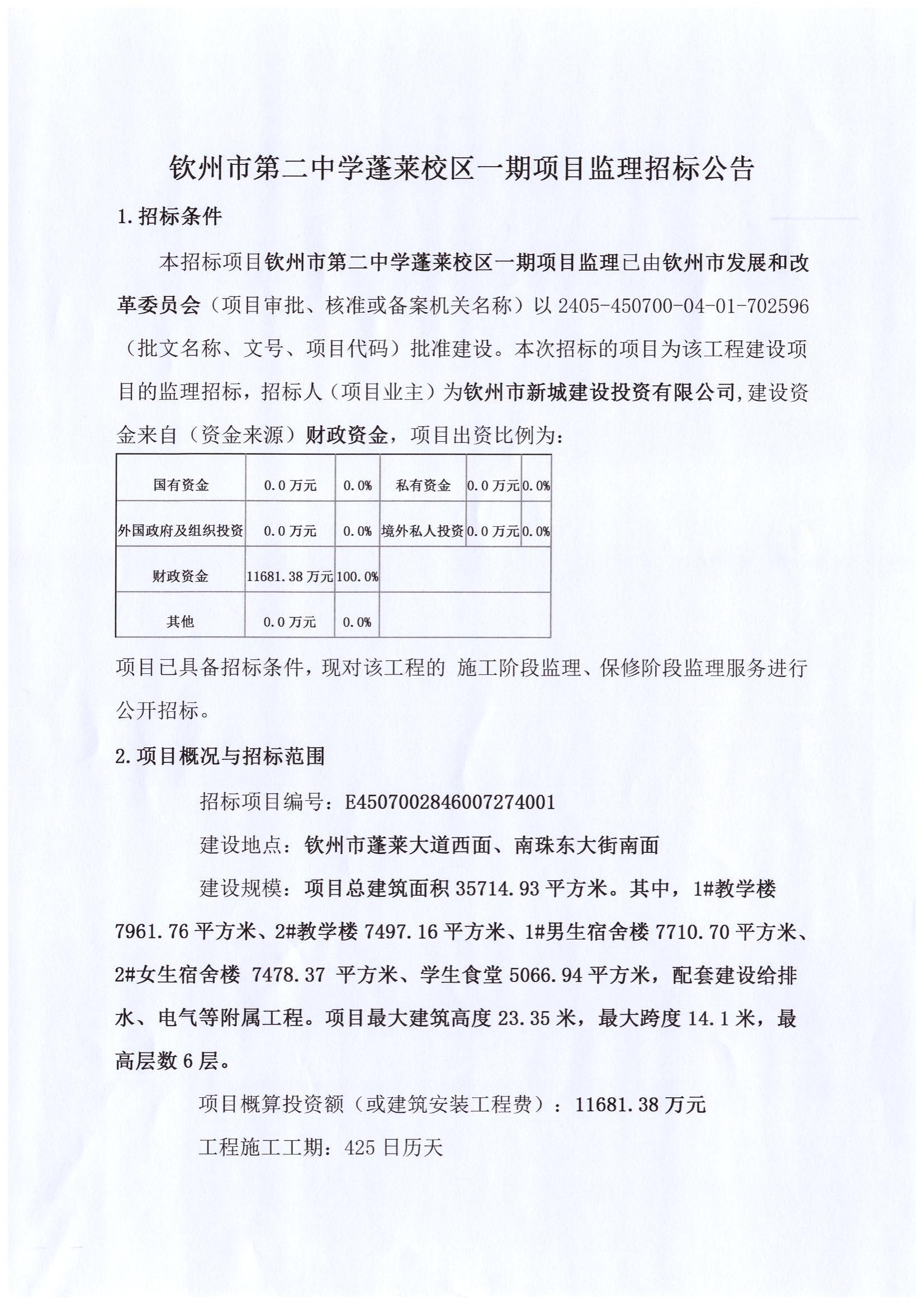 欽州市第二中學(xué)蓬萊校區(qū)一期項目監(jiān)理招標(biāo)公告