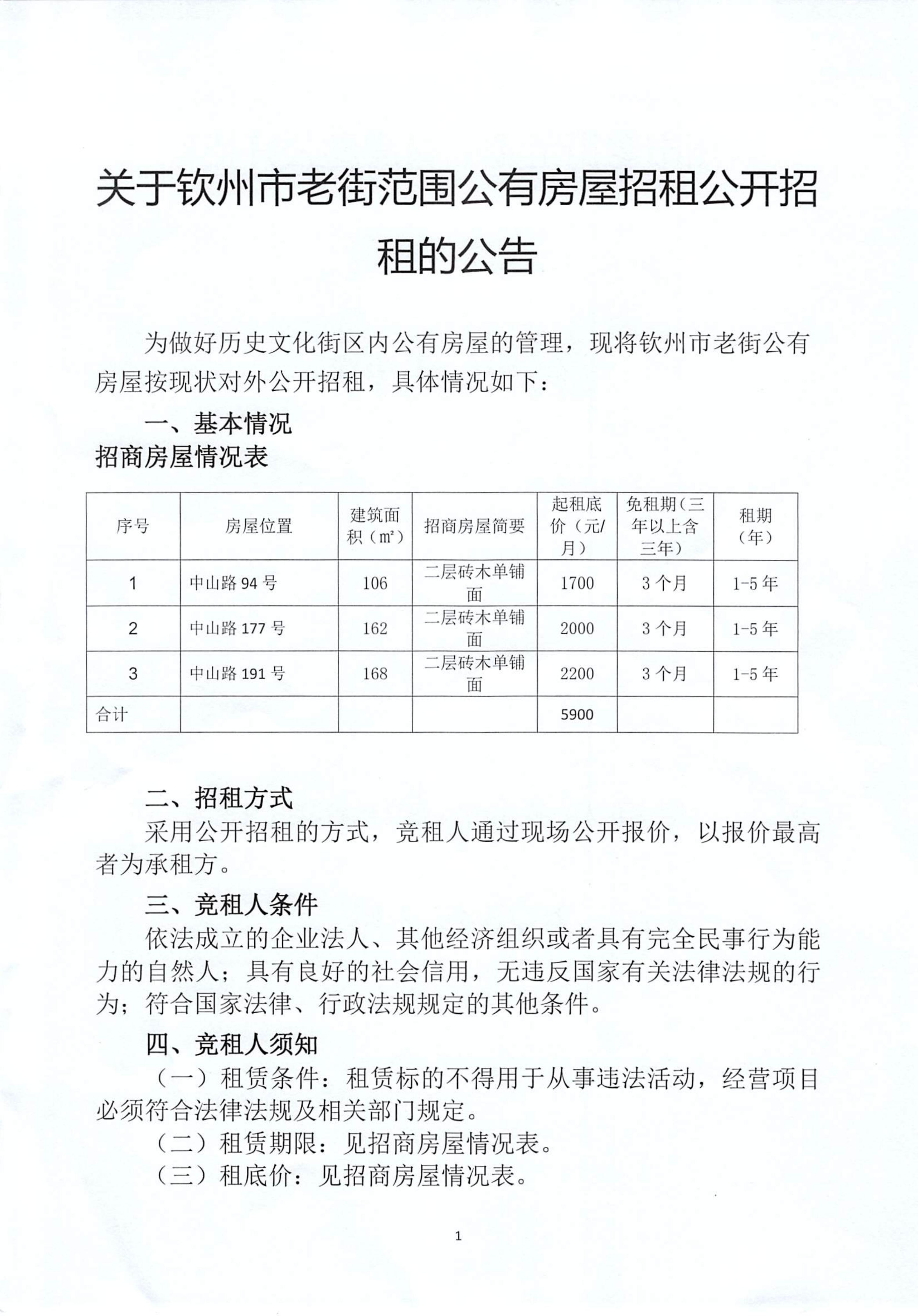 關(guān)于欽州市老街范圍公有房屋招租公開(kāi)招租的公告(中山路110號(hào)、中山路124號(hào)、中山路195-2號(hào)))